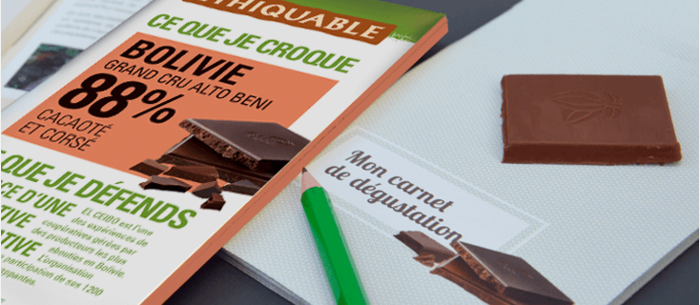 Alors, c'est simple pour recevoir ce Carnet de dégustation par courrier, envoyez-nous un mail sur partageons@ethiquable.coop avec vos coordonnées.