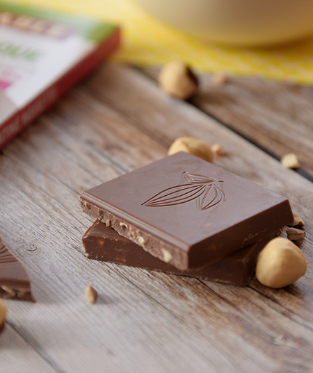 Chocolat au lait Noisette Caramel Beurre Salé équitable & bio - fabriqué dans notre chocolaterie42% cacao origine Pérou - Lait équitable et bio origine France Ajouter un commentaire