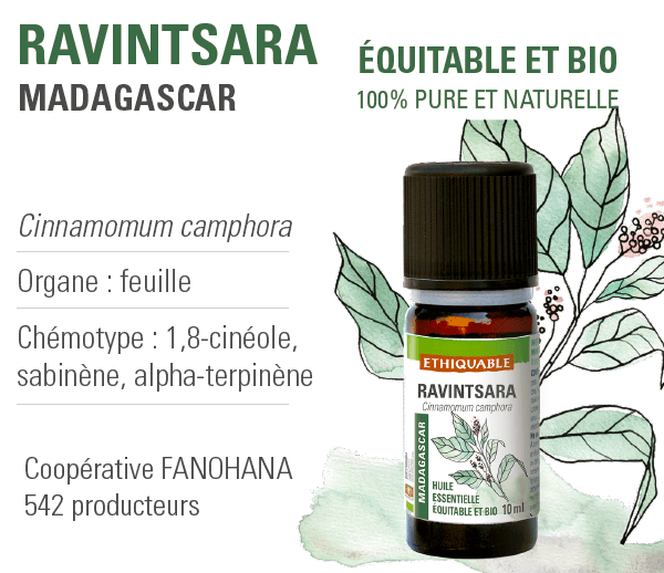 Huile essentielle de Ravintsara - 100% pure et naturelle - équitable & bioMadagascar avec la coopérative FANOHANA Ajouter un commentaire